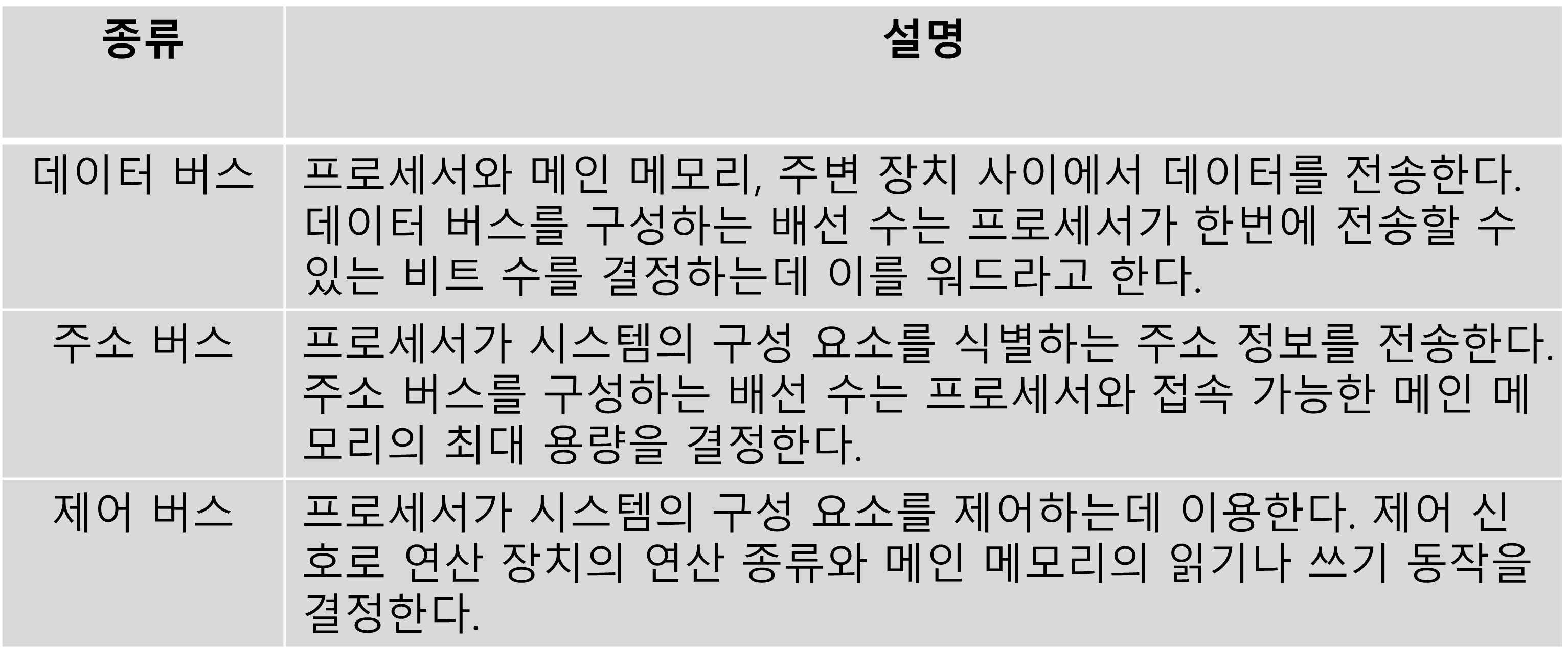 기능에 따라 데이터 버스, 주소 버스, 제어 버스로 구분한다.