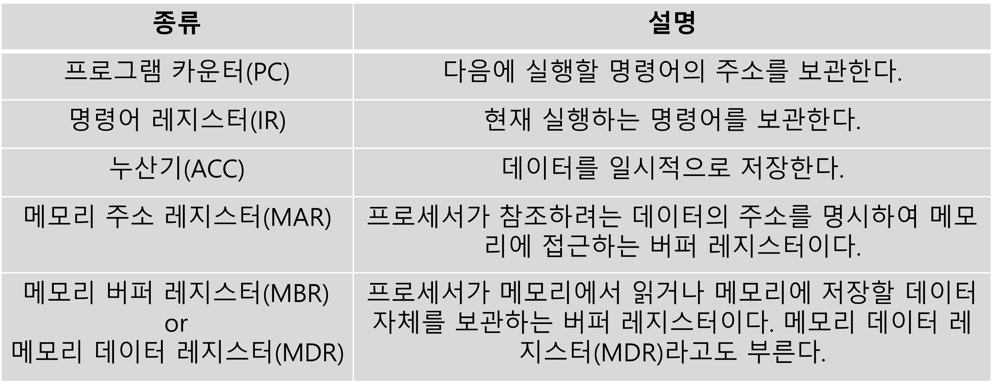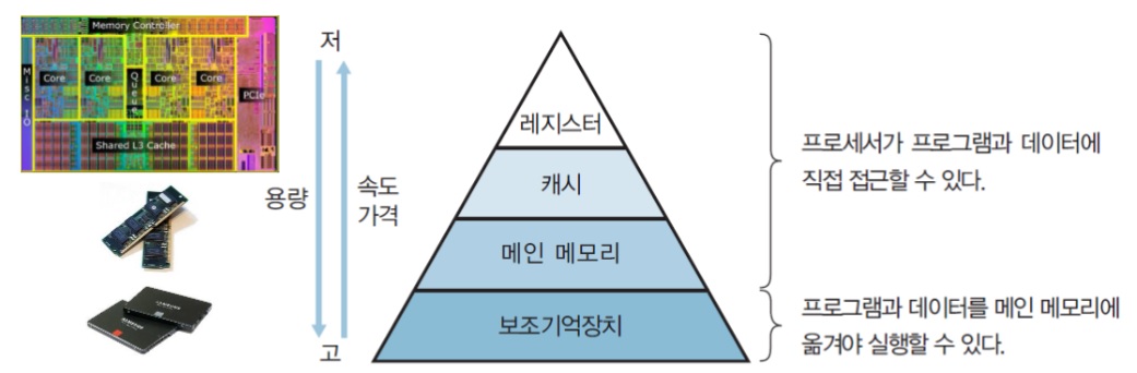 - 프로세서가 수행할 프로그램과 데이터 저장