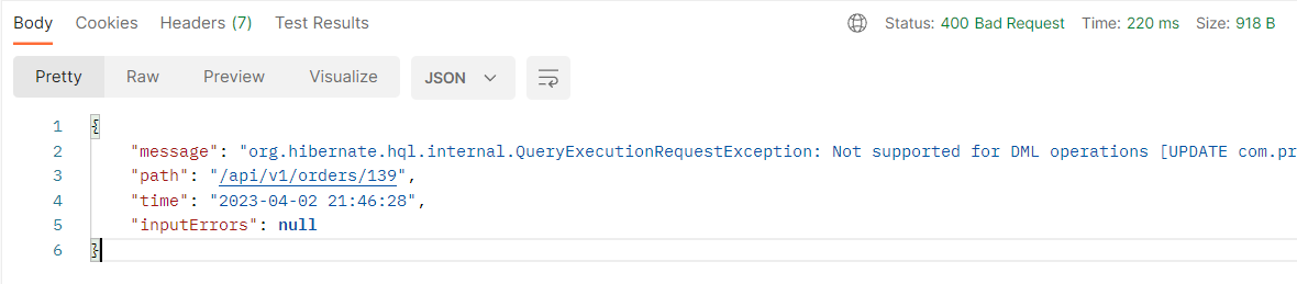 org.springframework.dao.InvalidDataAccessApiUsageException: org.hibernate.hql.internal.QueryExecutionRequestException: Not supported for DML operations