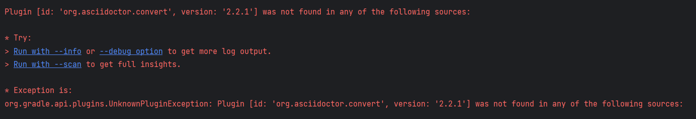 plugin id: 'org.asciidoctor.convert' version: '2.2.1' was not found in any of the following sources